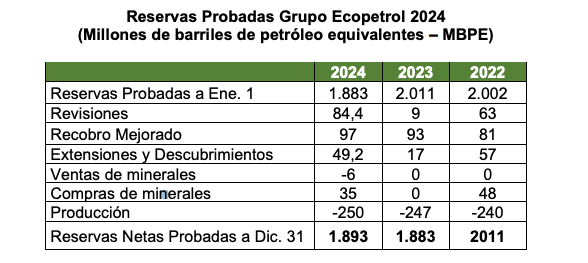 “El incremento de reservas logrado en 2024 es uno de los pilares de la estrategia del Grupo Ecopetrol que busca garantizar su sostenibilidad a largo plazo”, dijo Roa.