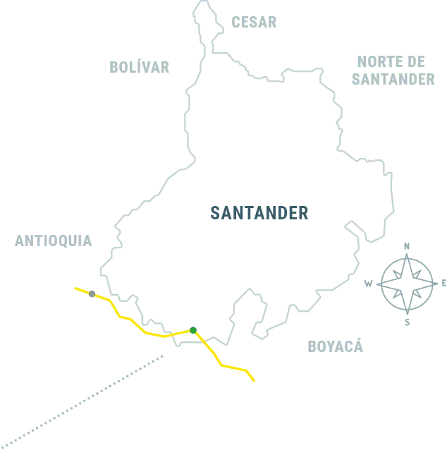 Al cruzar el límite que divide a los departamentos de Boyacá y Santander, en el kilómetro 180 del oleoducto, aparece el río Suárez irrigando la provincia de Vélez; región de clima templado y seco, reconocida por su rico folclor, música e industria agrícola, especialmente por el cultivo de guayaba y la elaboración del bocadillo. En la parte más alta de la provincia están los paisajes de ensueño de los municipios de Florián y La Belleza, en este último se encuentra la estación de Ocensa a 2.100 m.s.n.m. Allí, inicia el descenso del oleoducto hasta la estación Vasconia (130 m.s.n.m.) en Puerto Boyacá, Boyacá.